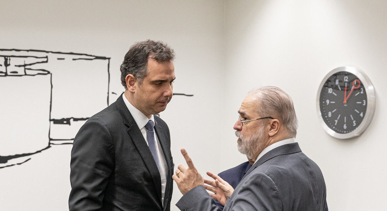 O presidente do Senado, Rodrigo Pacheco, e o procurador-geral da República, Augusto Aras